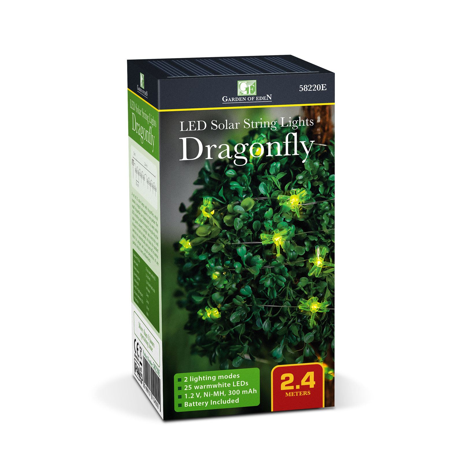- 1ks Solární LED světelný řetěz – vážka – 2,4 m – 25 LED – teplá bílá