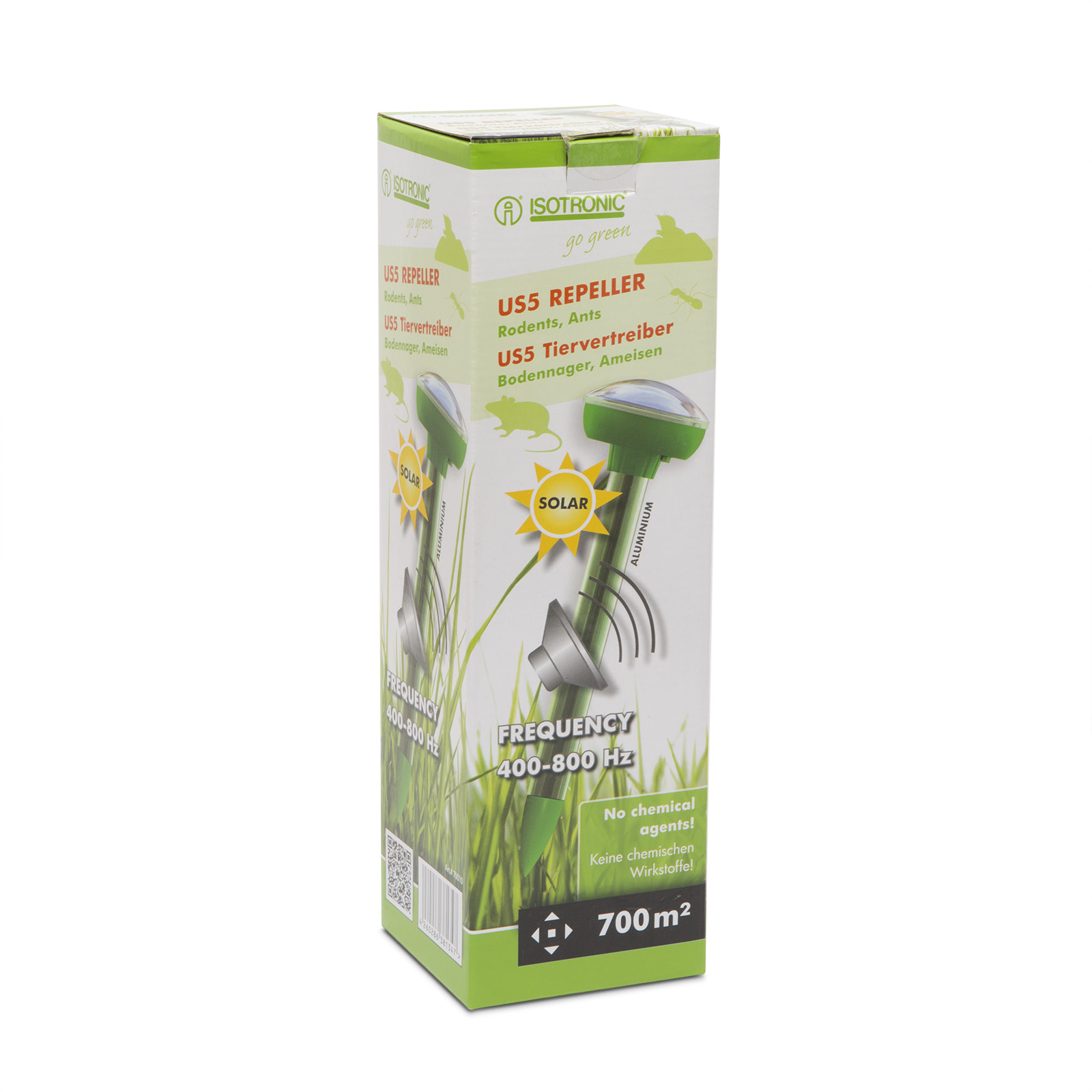Inovativní solární odpuzovač mravenců, krtků, myší je jedním z řady vynikajících produktů firmy Isotronic. Napájen je prostřednictvím solárního panelu, je přenosný a velmi účinný. Lze jej používat kdekoli, bez jakýchkoli chemických přípravků a ohrožení životního prostředí.