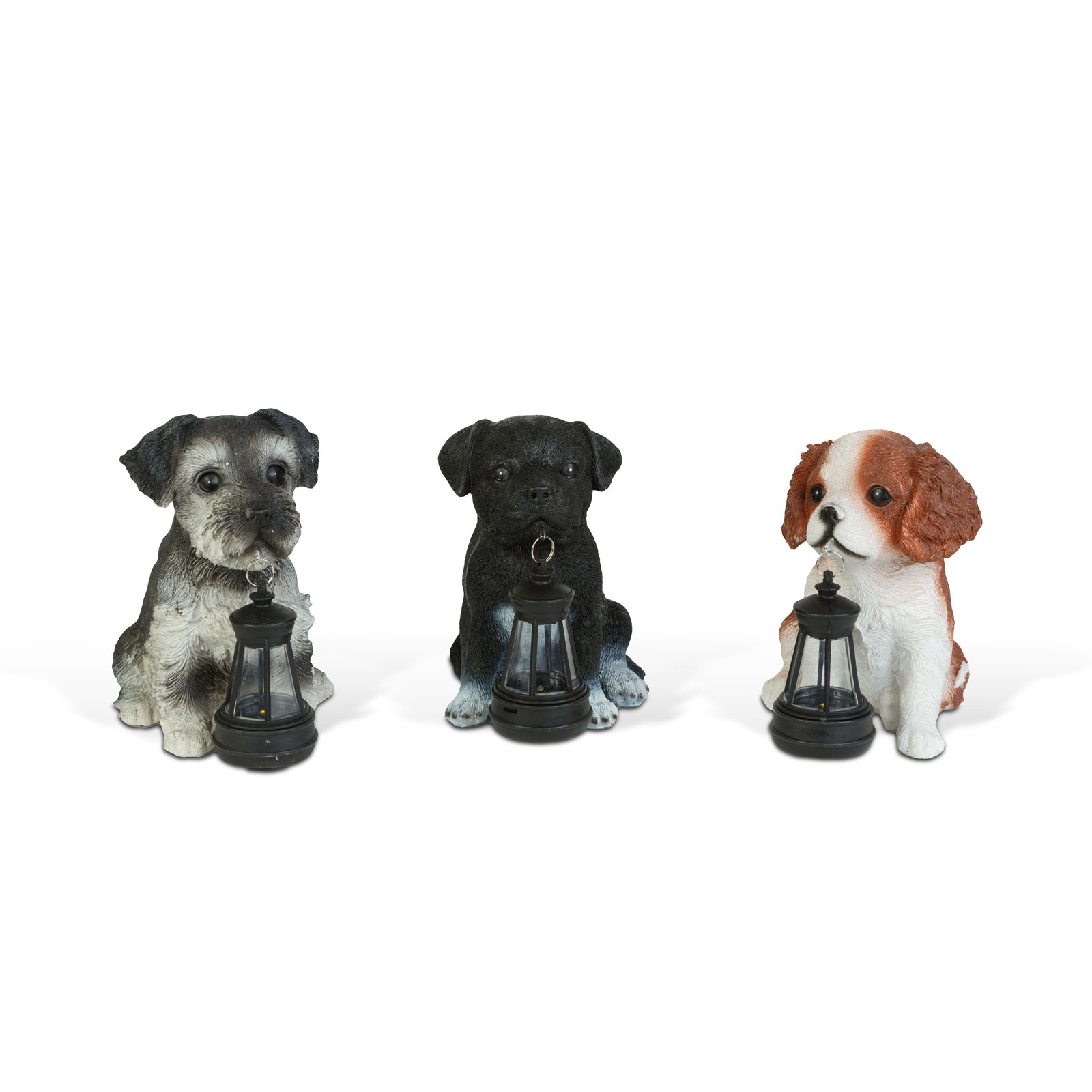 Tyto roztomilé solární figurky psů nejenže vykouzlí úsměv na tváři, ale díky teplému bílému LED osvětlení vytvoří příjemnou atmosféru na zahradě nebo terase. Na výběr jsou tři různé figurky psů, které svým provedením skutečně ozdobí květinové záhony, zahradní cestičky či vchody. Vestavěný solární panel během dne nabíjí dobíjecí baterii, která se při setmění automaticky rozsvítí LED diodou. Lampy vyrobené z polyresinu a plastu jsou odolné a vydrží i nepříznivé počasí.