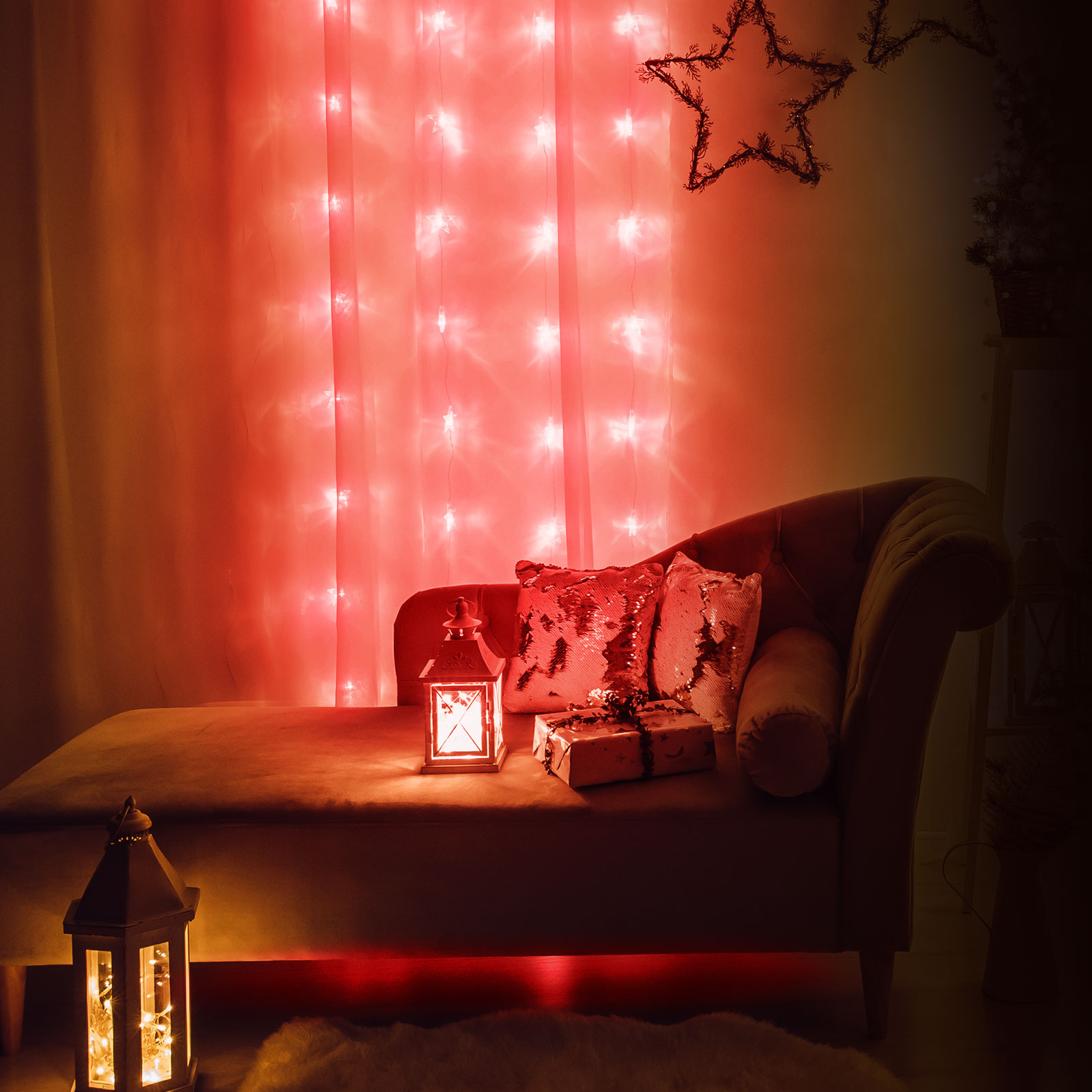 Jedinečný světelný závěs, který svítí červenou barvou, může být výbornou dekorací po celý rok ve vaší domácnosti, kanceláři nebo obchodě. Závěs může být skvělou dekorací během Vánoc, Halloweenu nebo na Valentýna. Díky své živé barvě naplňuje prostor životem a vytváří tak magickou atmosféru. LED světelné zdroje neblikají, šetří energii a mají extrémně dlouhou životnost. Díky provozu na baterie není potřeba, aby se v blízkosti nacházel zásuvka, umístění je jednoduché.