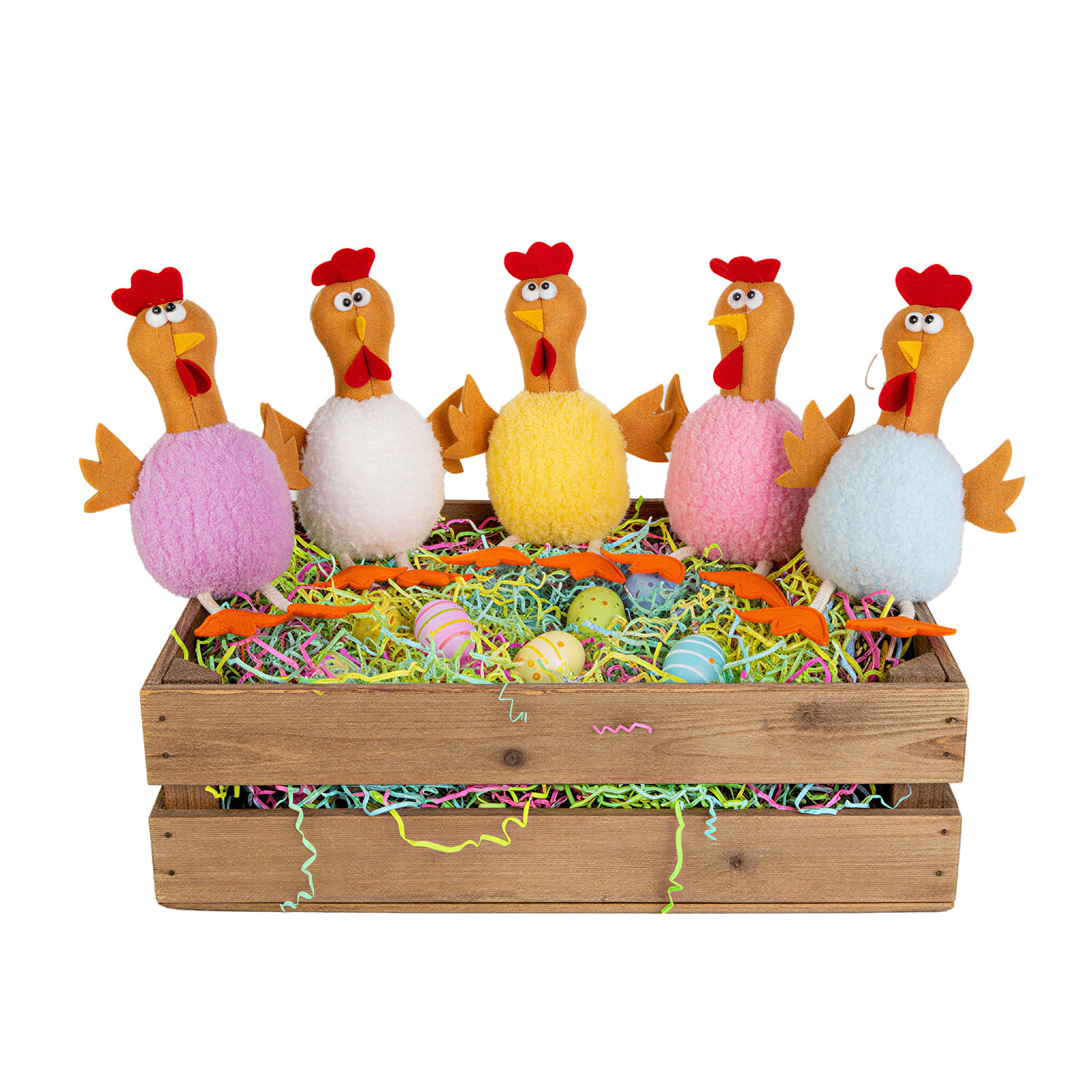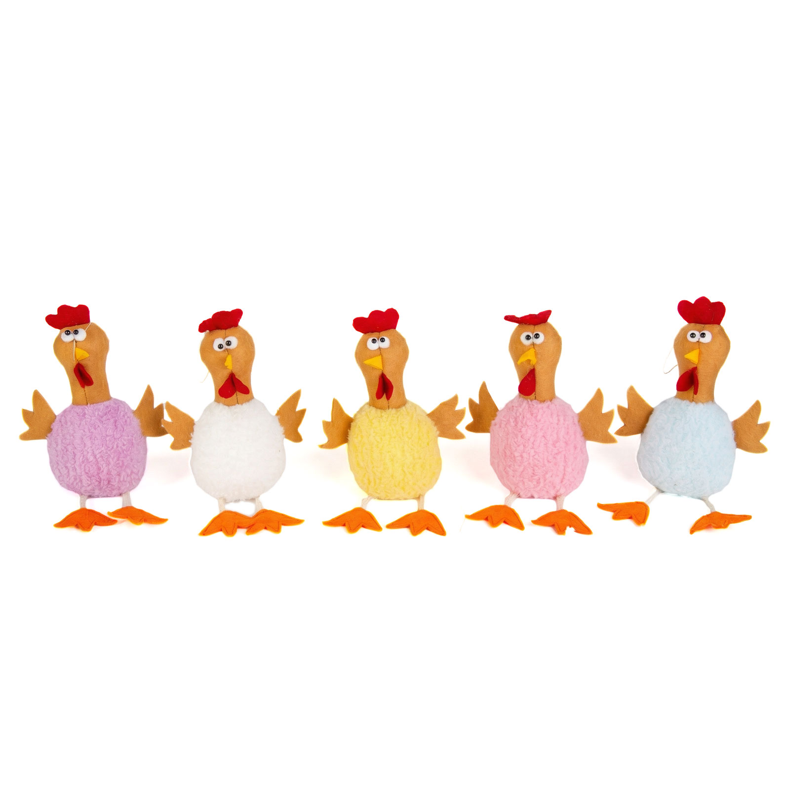Tato vtipná textilní dekorace kuřátka je perfektní volbou pro vytvoření veselé atmosféry ve vašem domově nebo kanceláři, zejména během velikonočního období. Detailní zpracování, nadýchané tělo a veselé, hravé výrazy zaručeně vykouzlí úsměv na tváři. Perfektní jako stolní dekorace, na poličku nebo jako dárek, protože jsou milým a jedinečným doplňkem každého interiéru.