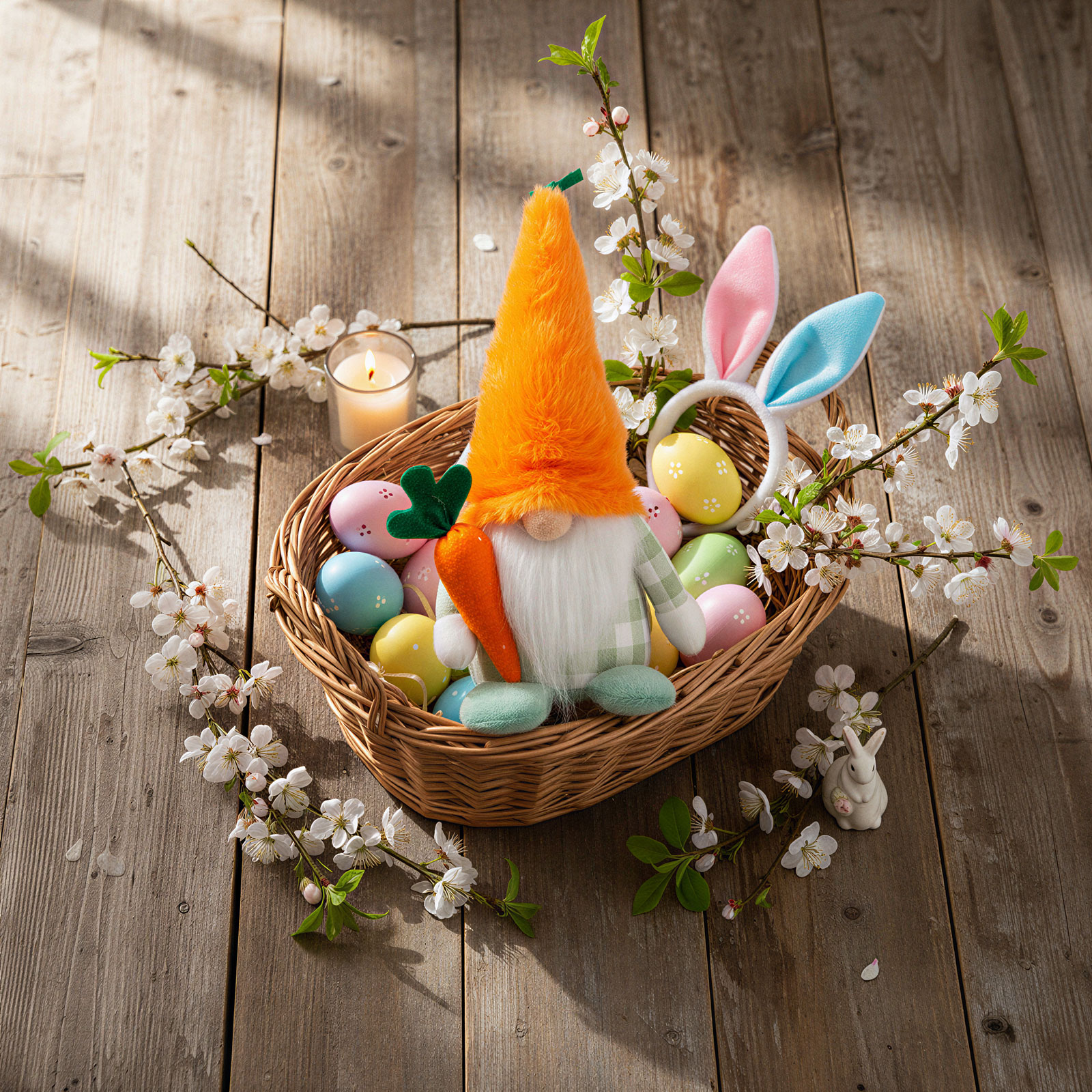Tento okouzlující textilní skřítek je ideální volbou jako velikonoční nebo jarní dekorace, která vytvoří veselou a přátelskou atmosféru ve vaší domácnosti či kanceláři. Skřítek se zářivě oranžovou mrkvovou čepicí a malou textilní mrkví v ruce dodává jedinečný a výjimečný vzhled.