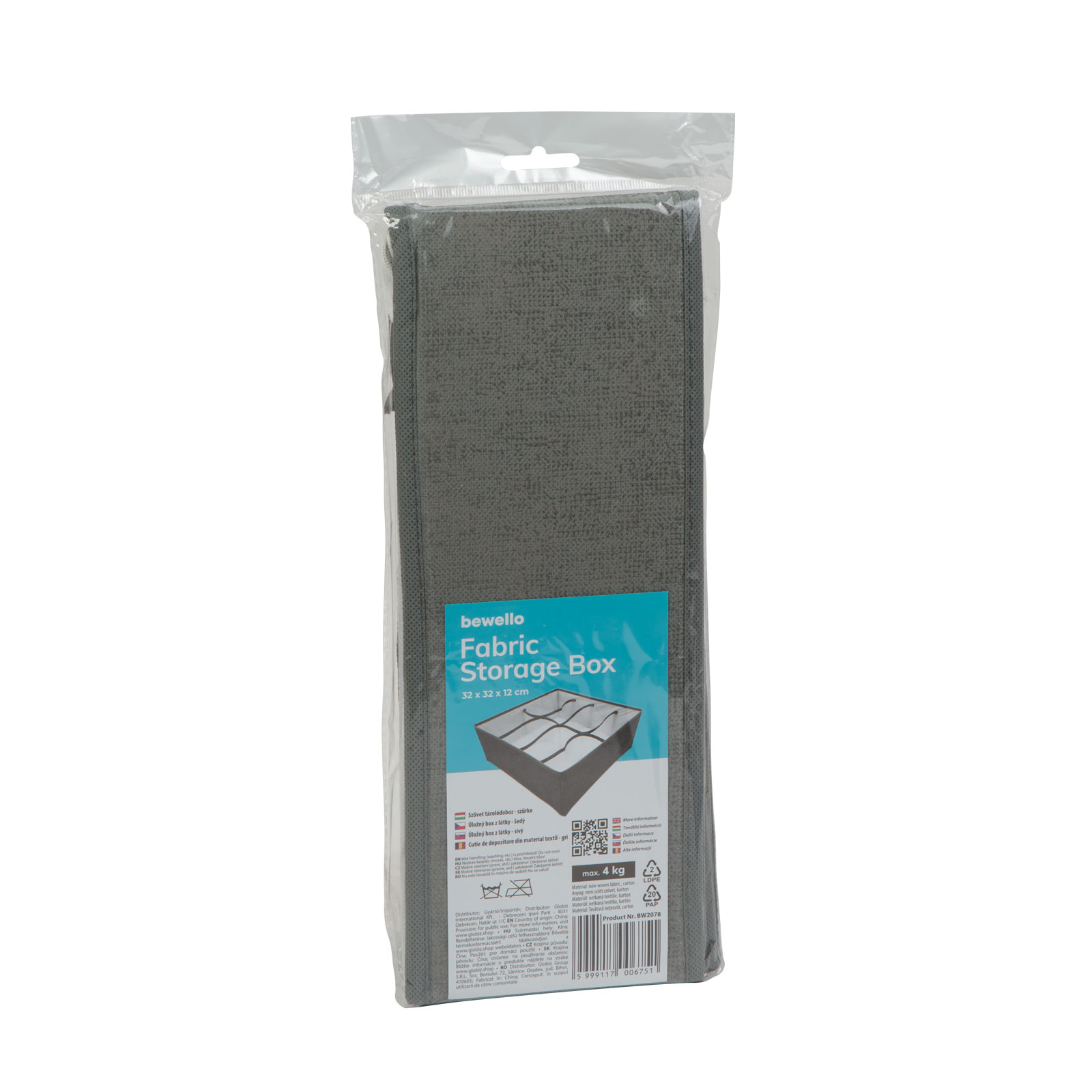 - 1 ks Textilní úložný box - 32 x 32 x 12 cm - 8 kapes - šedý