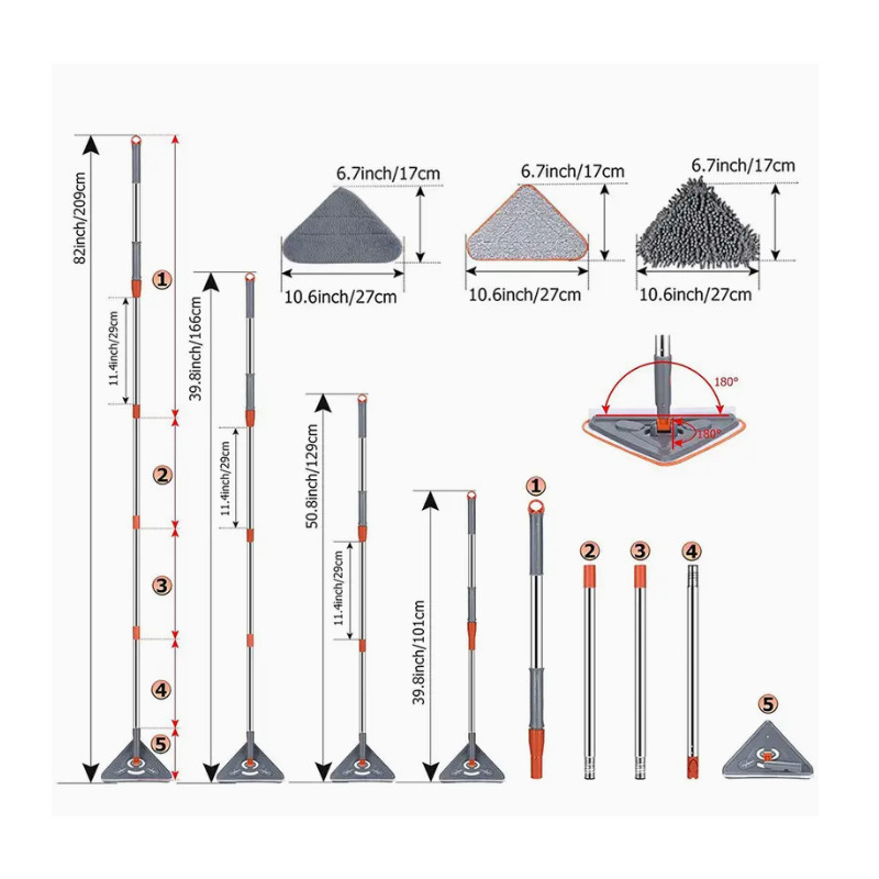 Trojúhelníkový mop otočný o 360°, čistič koupelnových dlaždic a oken je perfektní volbou – vyčistí okna, sprchové kouty a čelní skla, odstraní zbytky vodních skvrn a výrazně ti usnadní úklid.