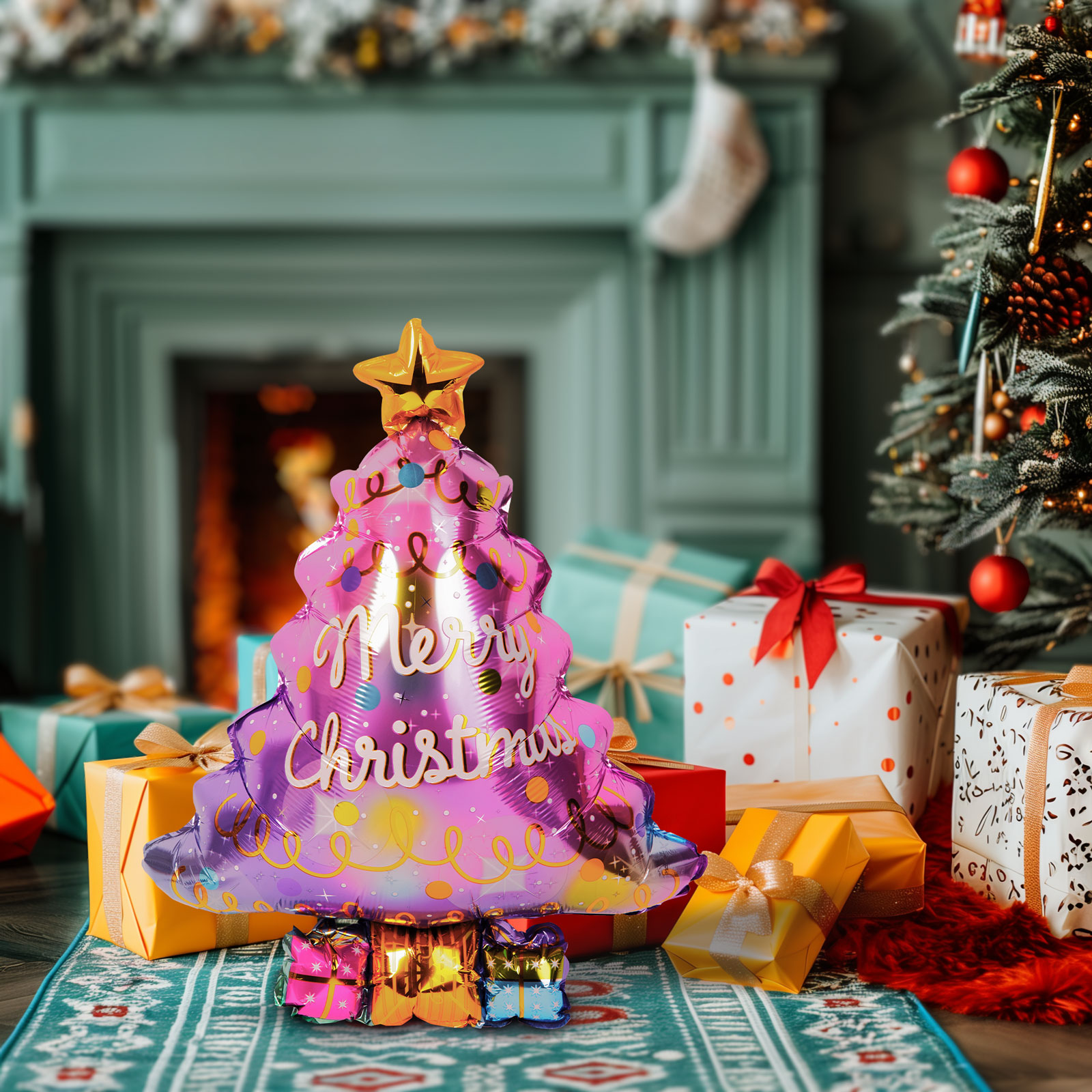 - 1 ks Vánoční balónek - hliníková fólie - vánoční stromek - 58 x 83 cm