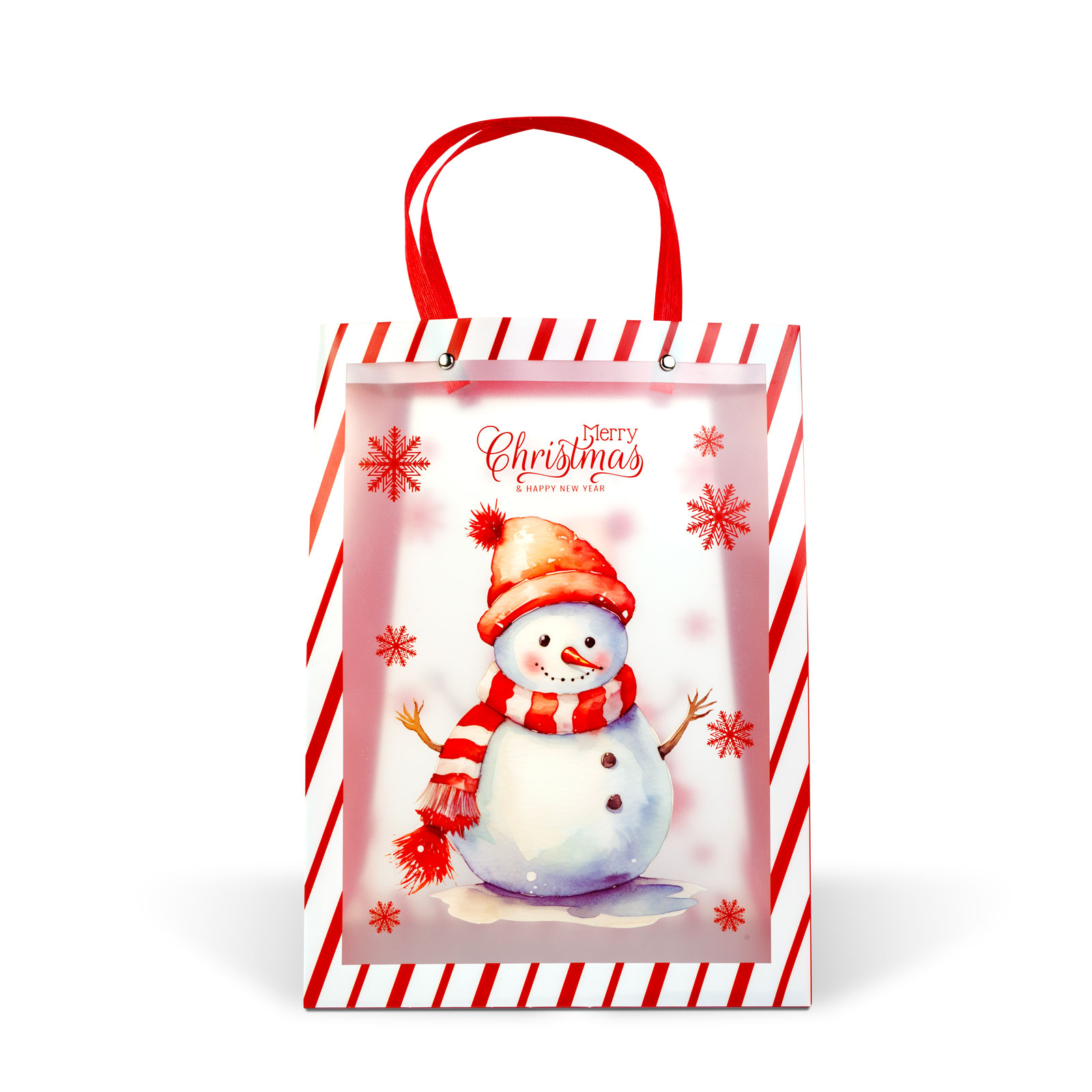 Zpříjemněte si obdarovávání s touto působivou vánoční dárkovou taškou! Díky praktické velikosti je ideální na předávání větších překvapení, sladkostí nebo dárkových balíčků. Dostupná ve dvou svátečních motivech – s karavanem nebo se sněhulákem. Průhledné boky tašky jí dodávají mimořádně elegantní, dekorativní vzhled.