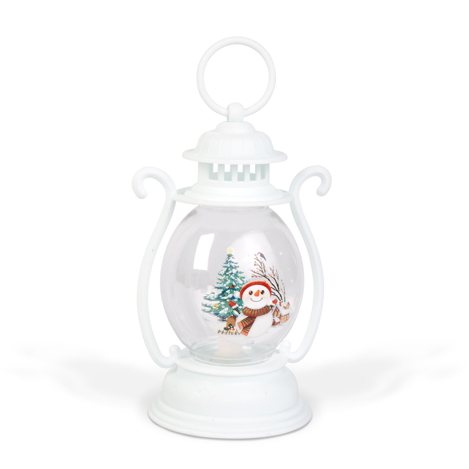 - 1ks Vánoční dekorace – lucerna – sněhulák – bílá – 16,5 x 7 cm – 3 x LR44
