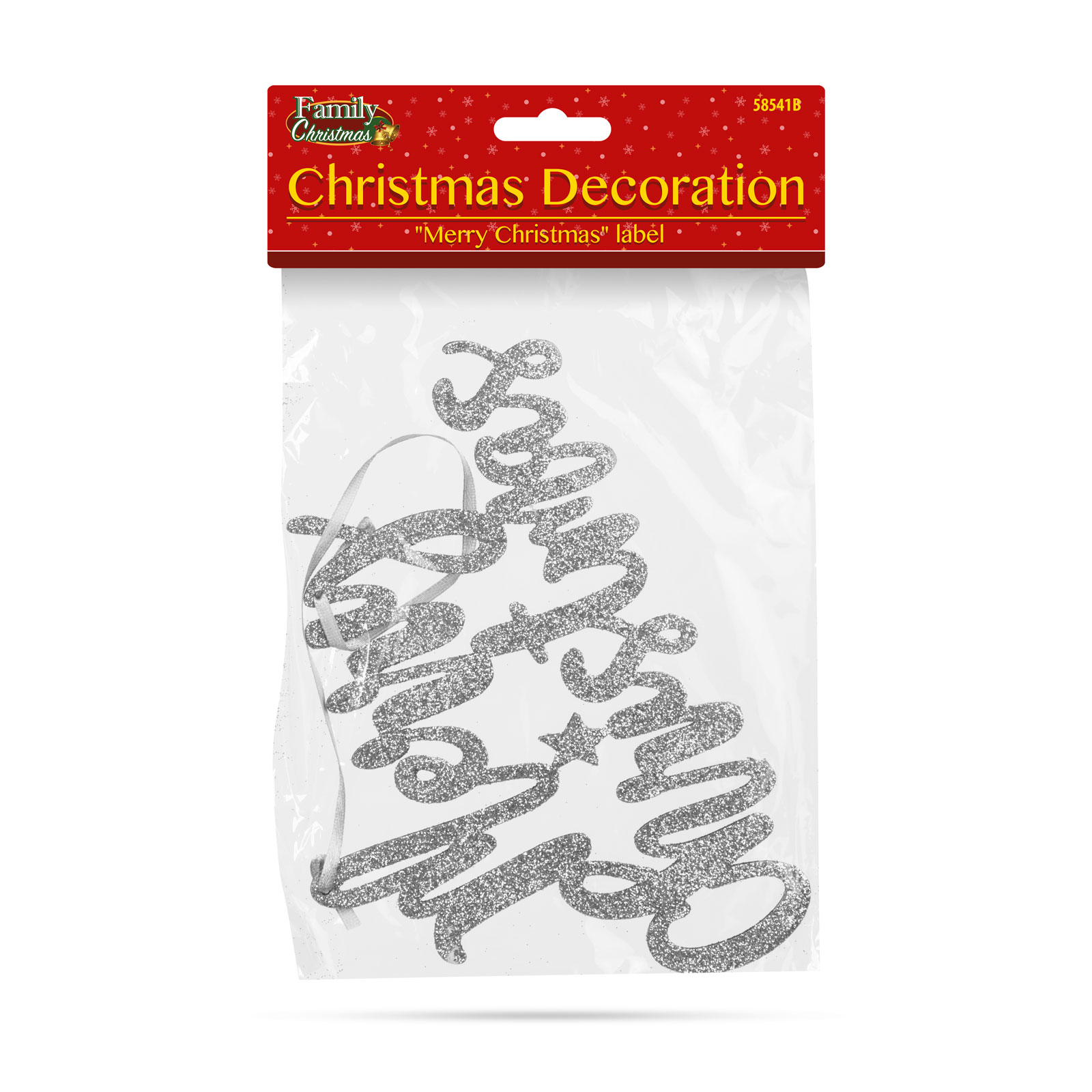 - 1 ks Vánoční dekorace – nápis "Merry Christmas" – 20 x 12 cm – stříbrná