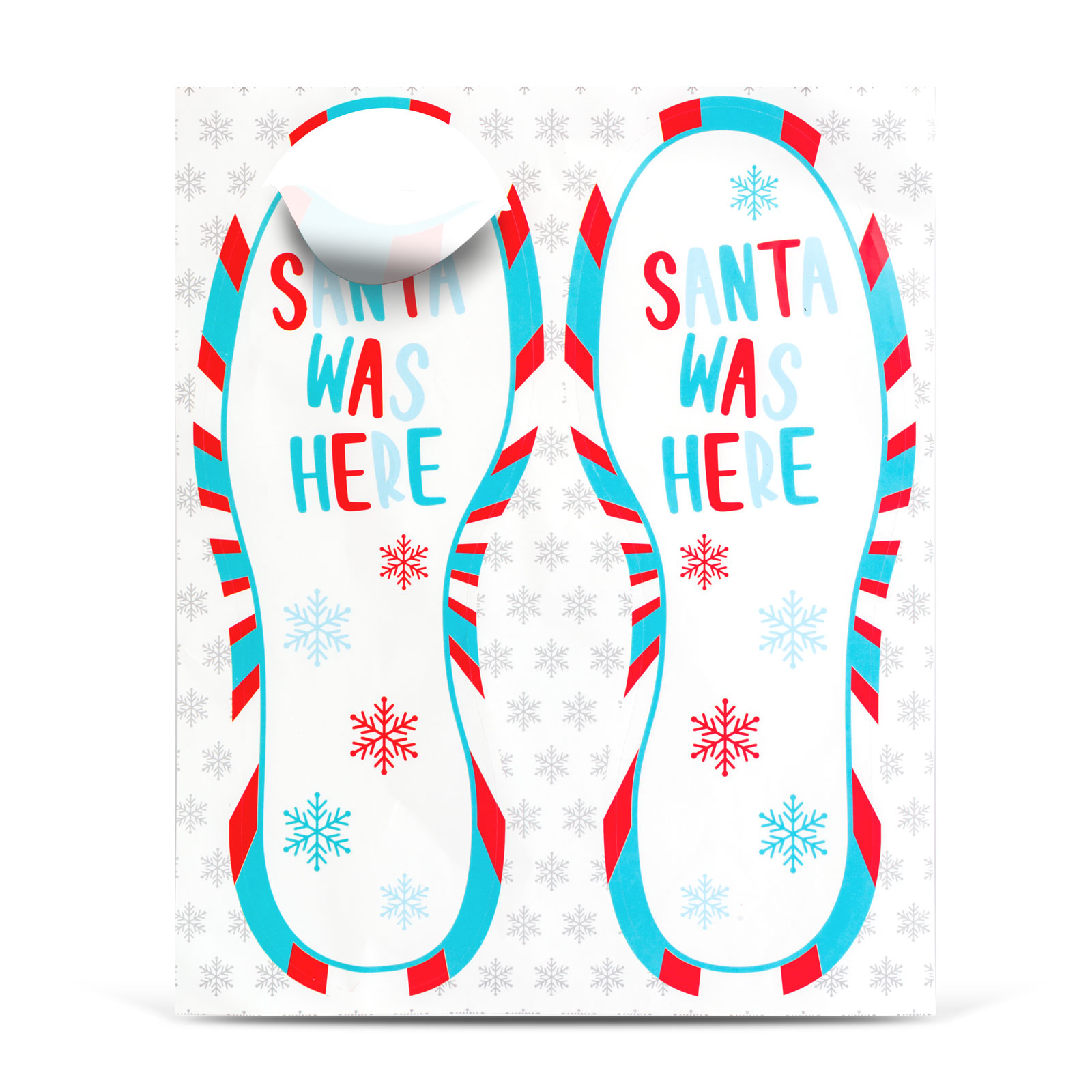Samolepku lze snadno umístit na podlahu, dlažbu nebo dokonce na koberec, čímž dětem poskytne nezapomenutelné překvapení. Veselá kombinace červené, modré a bílé barvy spolu se sněhovými vločkami vytváří sváteční atmosféru v každé domácnosti.