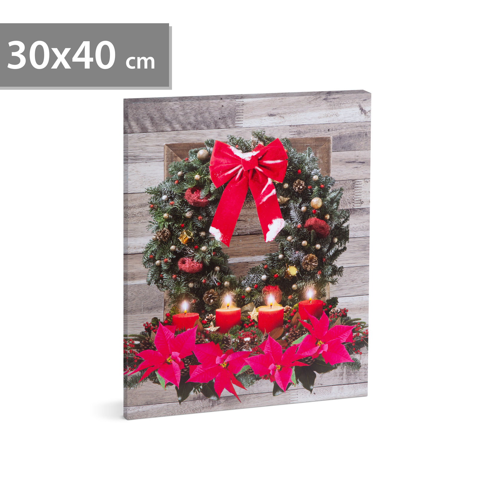 Vánoční LED obrázek – s věšákem na stěnu, 2 x AA, 30 x 40 cm