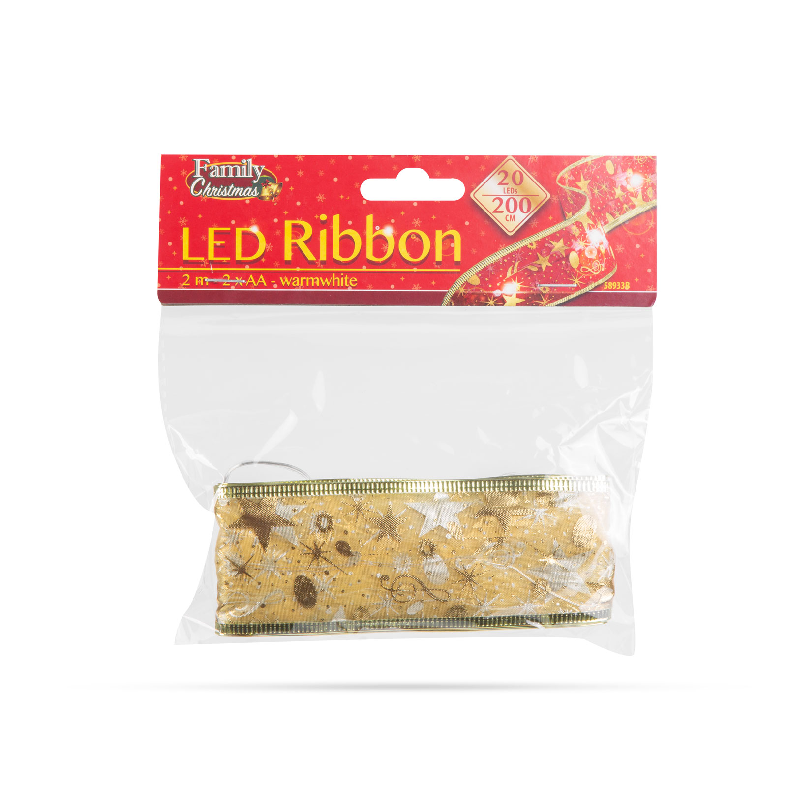 - 1 ks Vánoční LED pásek - zlatý - 2 m x 5 cm - 2 x AA
