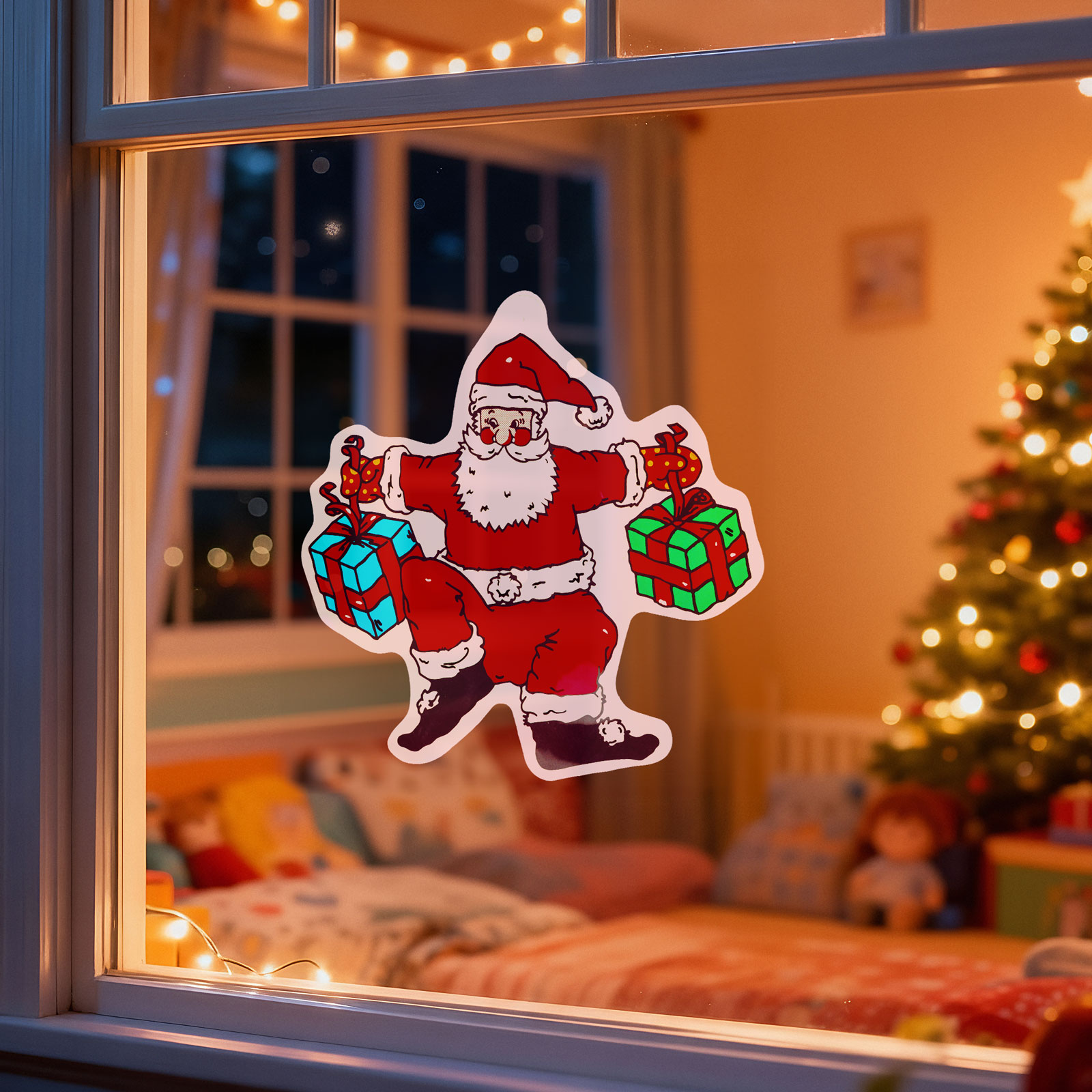 Oživte svůj domov touto veselou vánoční okenní dekorací s přísavkou! Detailně zpracovaný Santa Claus je ideální volbou na okna, zrcadla nebo jiné hladké povrchy. Živé barvy a roztomilý vánoční motiv zaručeně vytvoří veselou atmosféru ve vaší domácnosti. Díky upevnění přísavkou lze snadno připevnit a odstranit bez zanechání stop. Skvělá volba do dětských pokojů, obývacích pokojů, předsíní nebo také jako kancelářská dekorace.