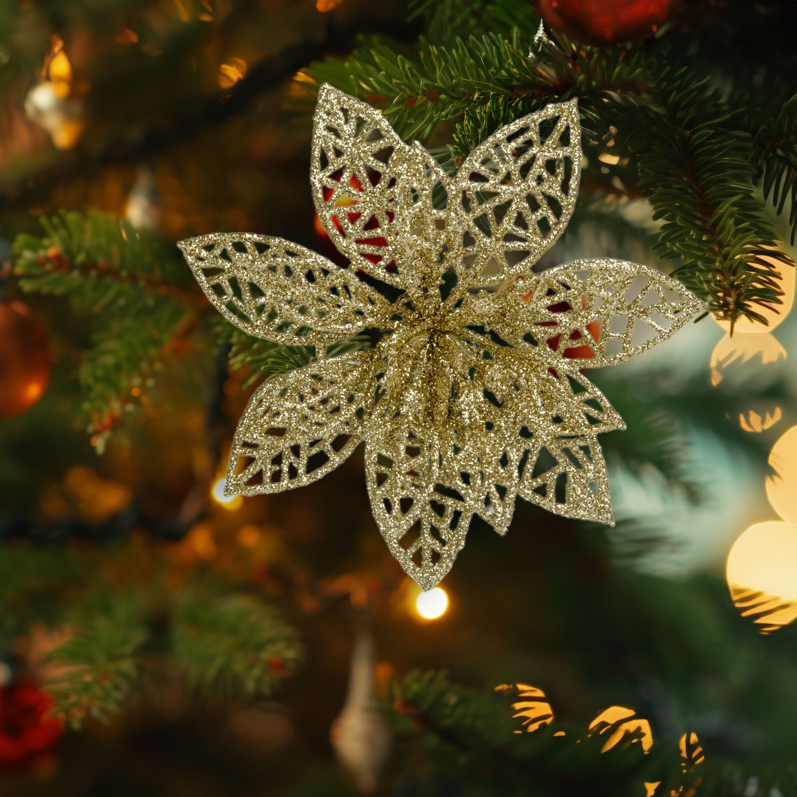 Speciální produkt pro vánoční dekoraci, který lze upevnit pomocí klipu. Květ má lesklý, třpytivý povrch. Díky klipovému uchycení má široké využití a je ideální také pro zdobení vánočních stromků, girland, klop a adventních věnců.