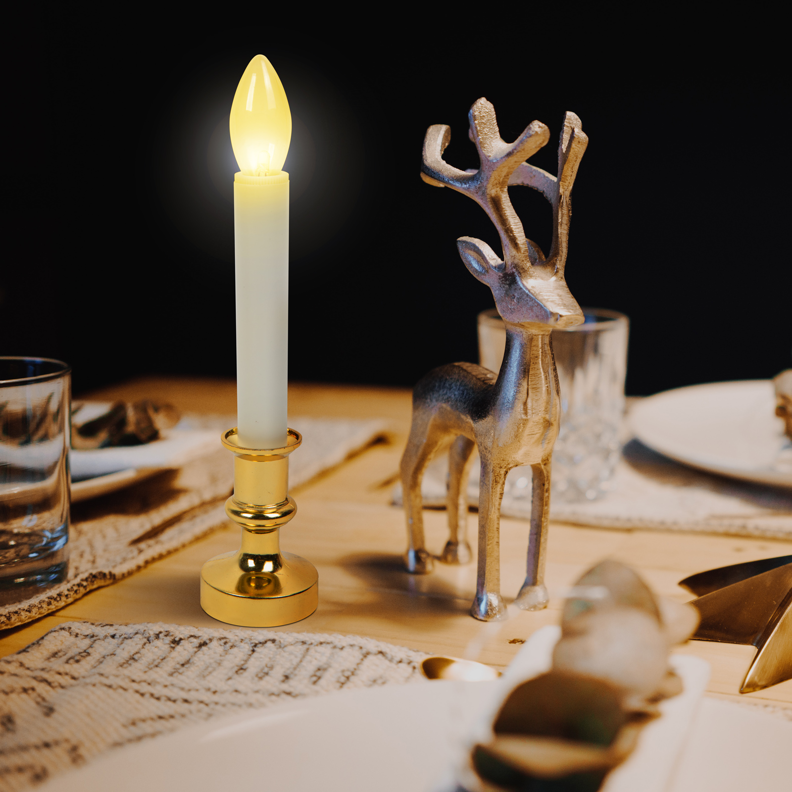 Vánoční ozdoba – svíčka se žlutou LED – bílá / zlatá – 22 cm