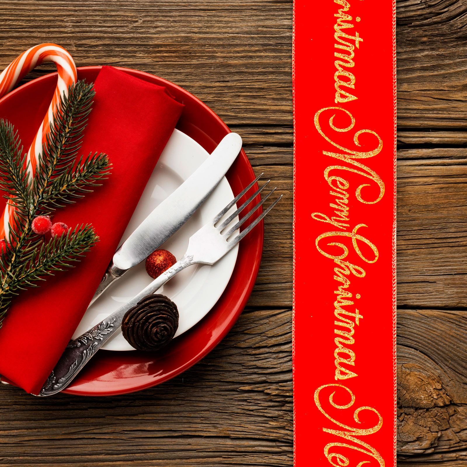 Ozdobte dárky pro své blízké, vánoční stromeček nebo sváteční stůl textilní vánoční ozdobnou stuhou. Zářivě červenou stuhu zdobí třpytivý nápis "Merry Christmas". Úspěch je zaručen!