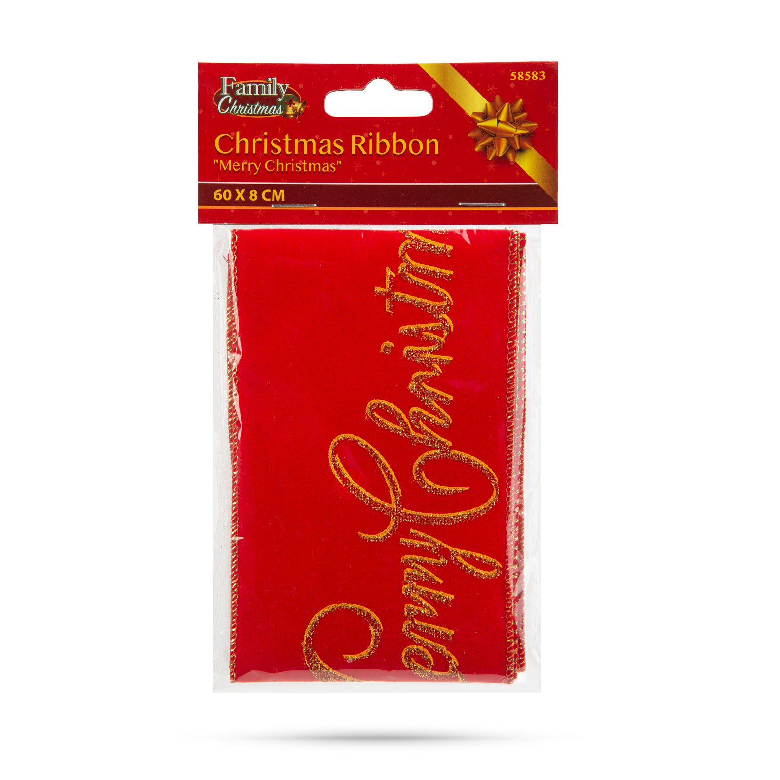 - 1 ks Vánoční stuha - červená - "Merry Christmas" - 60 x 8 cm