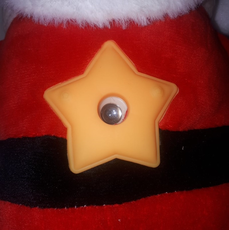Po stlačení bříška z plyše se zapne projektor, který magicky osvětlí strop.