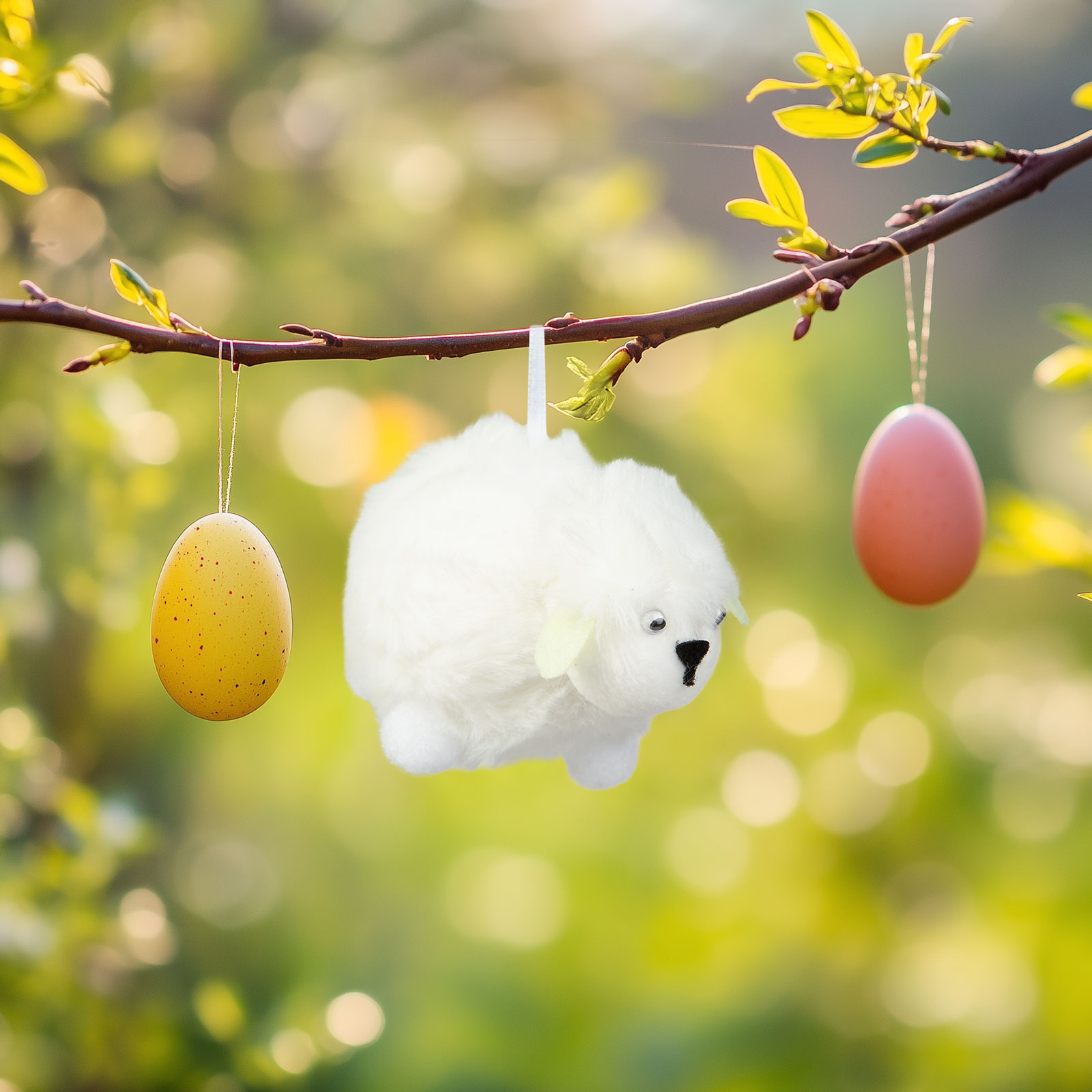 Zpříjemněte si domov touto roztomilou bílou figurkou beránka! Měkká a nadýchaná dekorace je ideální volbou jako velikonoční stolní doplněk, dekorace na poličku nebo na zavěšení. Díky poutku ji lze snadno umístit a může být krásnou ozdobou každé místnosti.