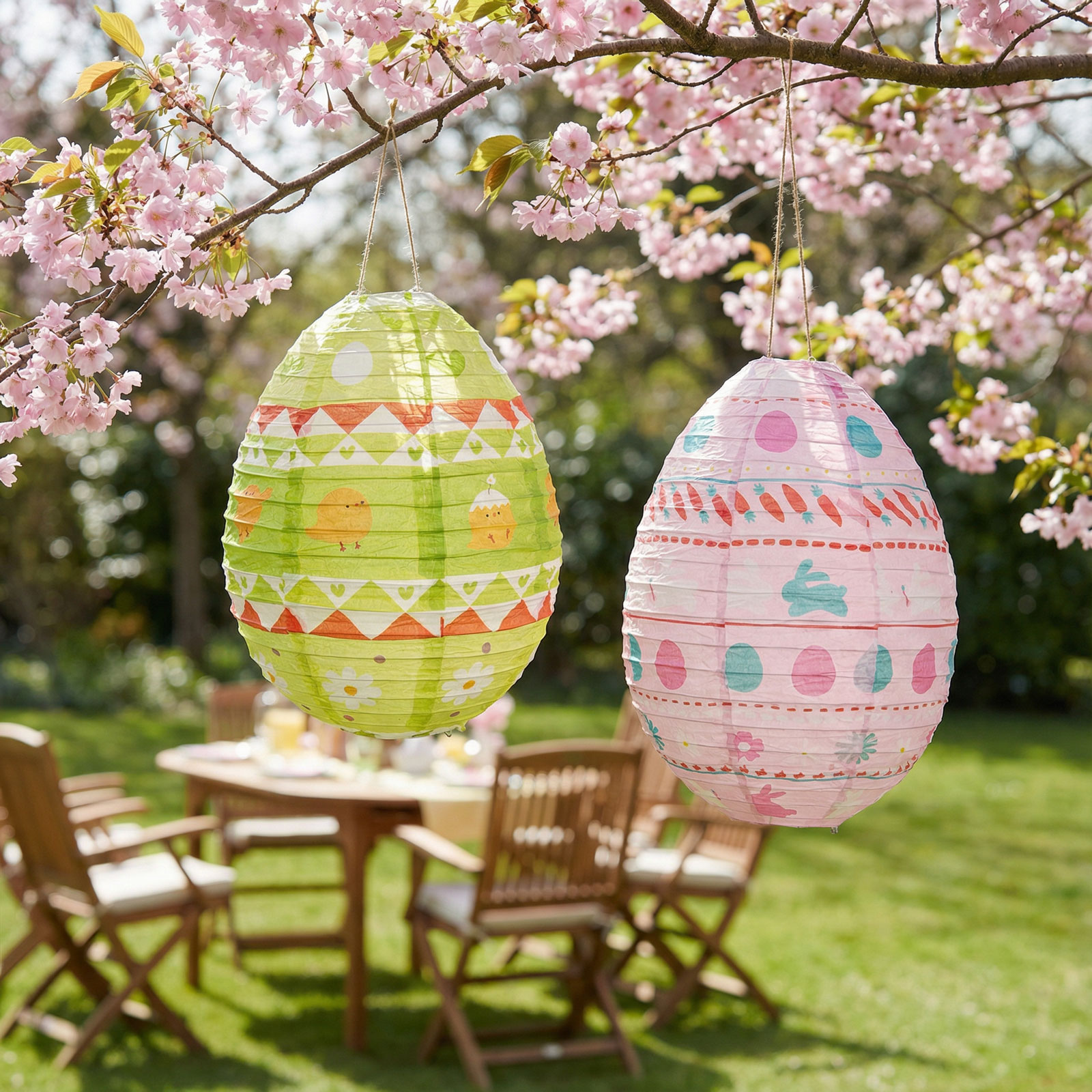 Oživte svůj domov tímto půvabným, vajíčkovým velikonočním lampionem! Barevný papírový lampion s veselými jarními motivy (zajíčci, kuřátka, květiny, vajíčka) je skvělou volbou jako velikonoční dekorace do interiéru nebo na krytou terasu. Je lehký, praktický a rychle se skládá, díky čemuž je ideálním doplňkem jarních párty, svátečních stolů nebo okenních dekorací. Dostupný ve dvou barvách: zelené a růžové.