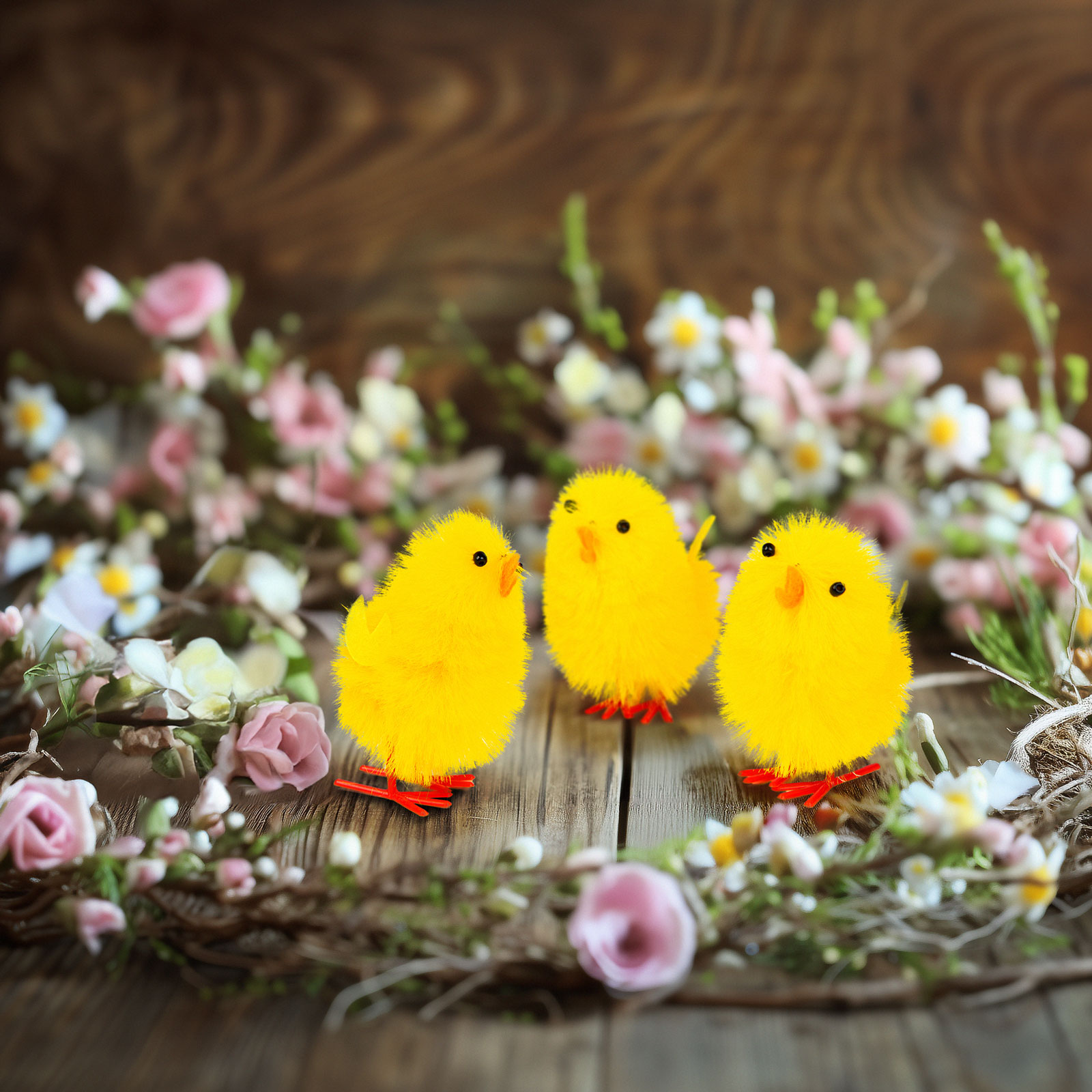 Vneste do svého domova atmosféru jara a Velikonoc s touto roztomilou sadou kuřátek! Třídílná dekorační sada obsahuje jasně žlutá, měkká kuřátka, která jsou ideální jako stolní dekorace, do košíků nebo dárkových balení. Skvěle se hodí do jakékoliv velikonoční kompozice.