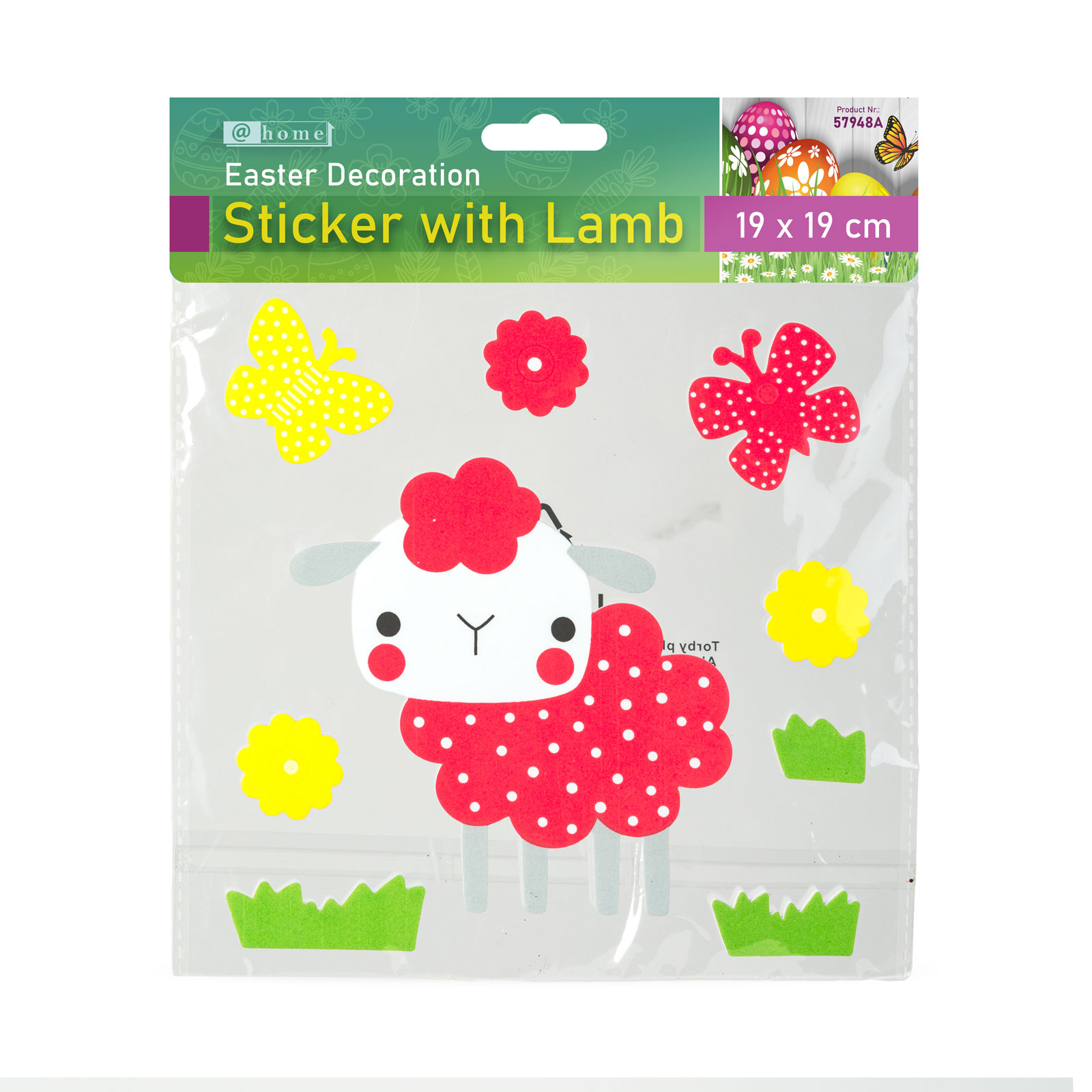 - 1ks Velikonoční dekorace - samolepka - s ovečkou - 19 x 19 cm