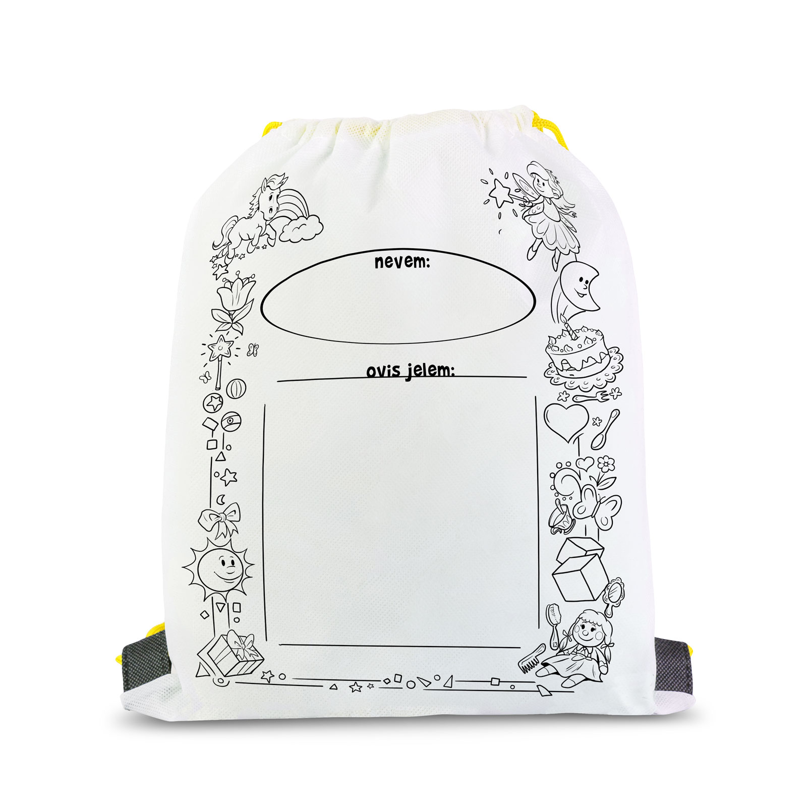 Vybarvi si vlastní sportovní vak, batoh se sadou barevných fixů. Dva v jednom: sportovní vak a zábavná aktivita pro děti. Při vybarvování vložte mezi dvě vrstvy materiálu vaku silnější papír, aby se barva nedostala na zadní stranu.