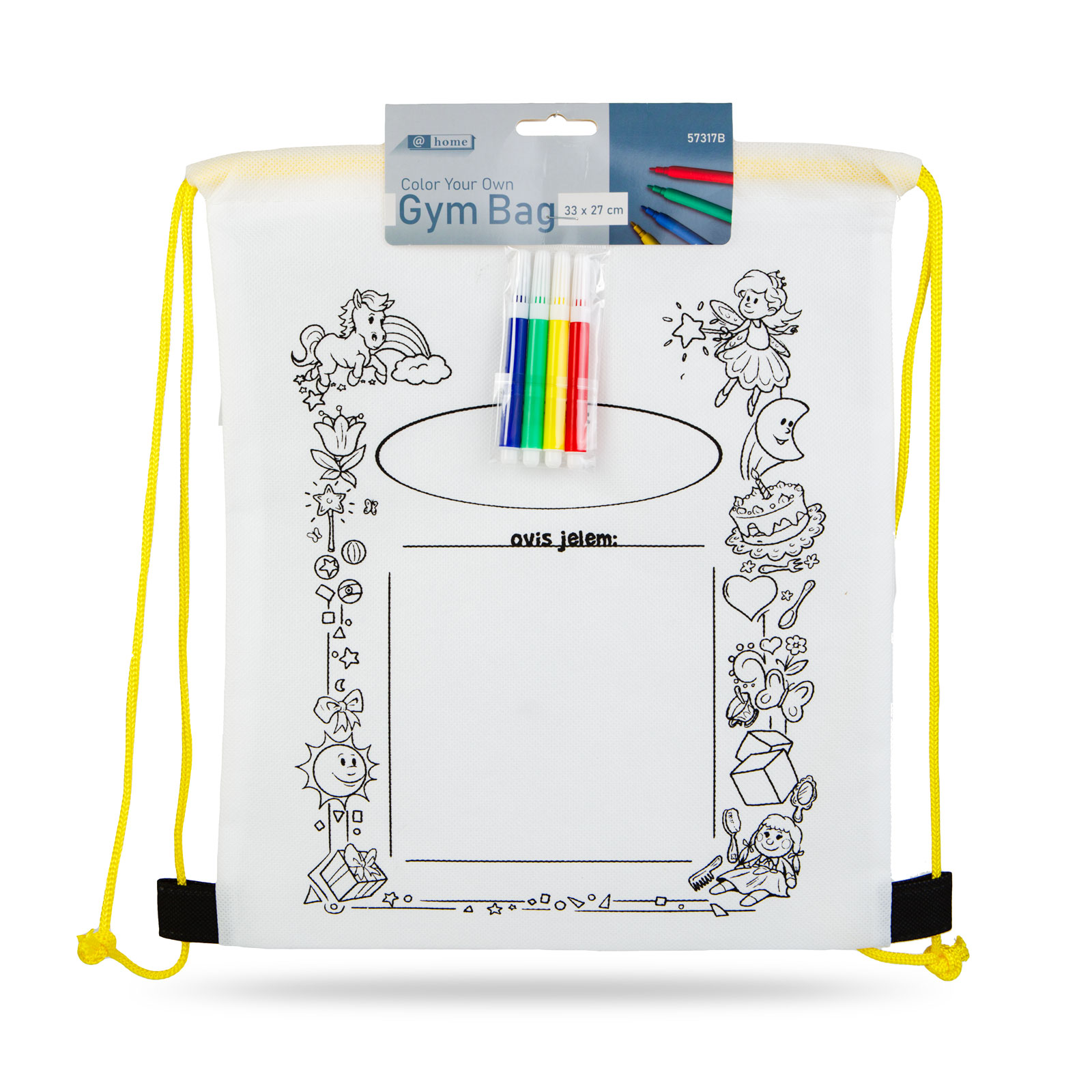 - 1 ks Vybarvovací vak na přezůvky – se 4 fixy – 33 x 27 cm