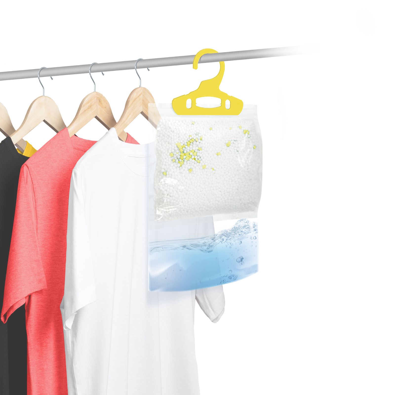 Pro zdravý, čerstvý vzduch v našem bytě a abychom se vyhnuli plísním, musíme regulovat teplotu a vlhkost. Výborně pomáhá tento produkt, který na vlhkých a mokrých místech sbírá vlhkost vzduchu v místnosti pomocí polštářku v balení. Díky praktickému věšáku jej lze umístit i do šatní skříně nebo do koupelny, čímž zabráníte vzniku plísní nebo plesnivění oblečení.